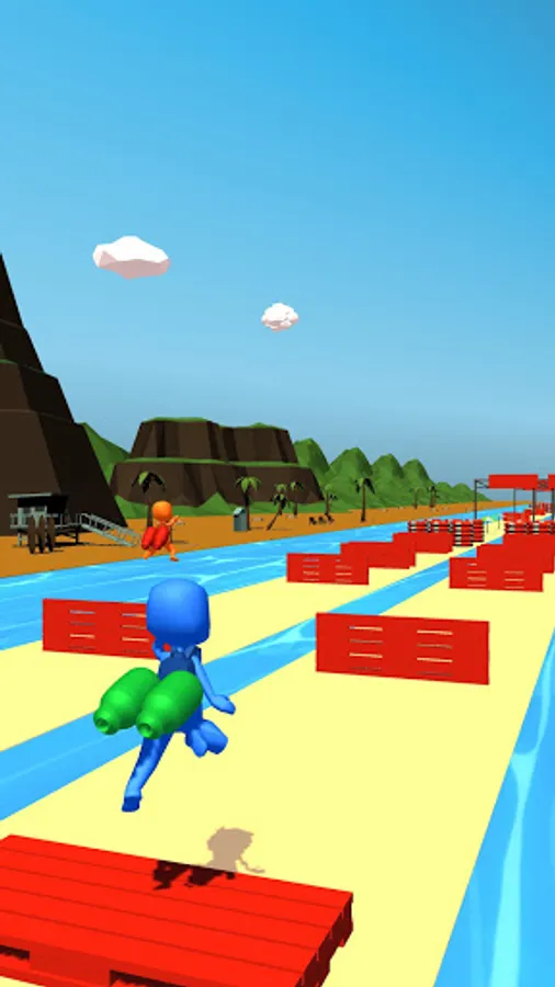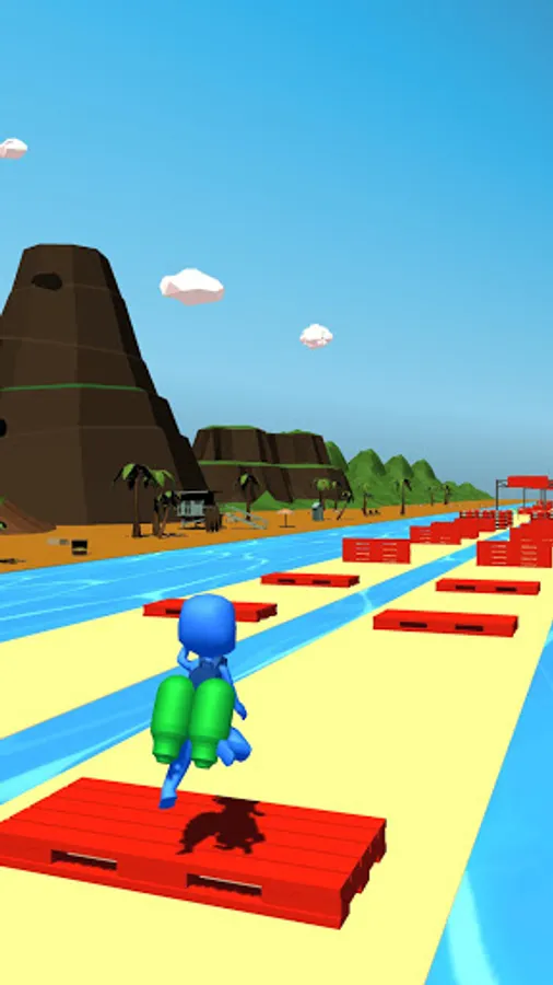Tap to get a boost from your jetpack you will be launched in the direction the jetpack is facing. You must get to the end of the obstacle course before your opponent and win the race!