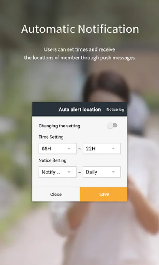 - Safety Zone : Sends notification when the friend exits the safety zone.