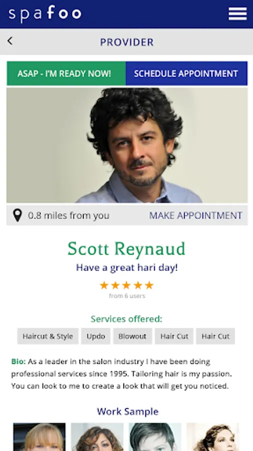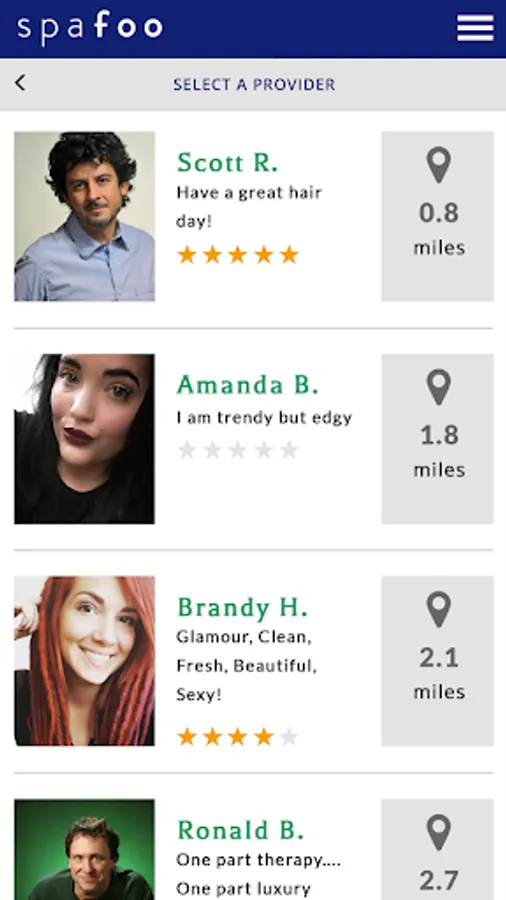 Spafoo makes it easy to find local, licensed, and professional cosmetologists, massage therapists, estheticians, makeup artists and nail technicians. Just select the service you need, select the professional near you, and we will come to your hotel, home, office, or any special venue place. Spafoo answers the time management needs of the busy professional and provides convenience to those looking to be pampered.