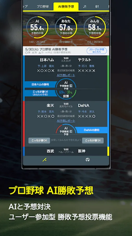 In professional baseball AI win / loss prediction, by voting with the voting function that predicts which team will win,