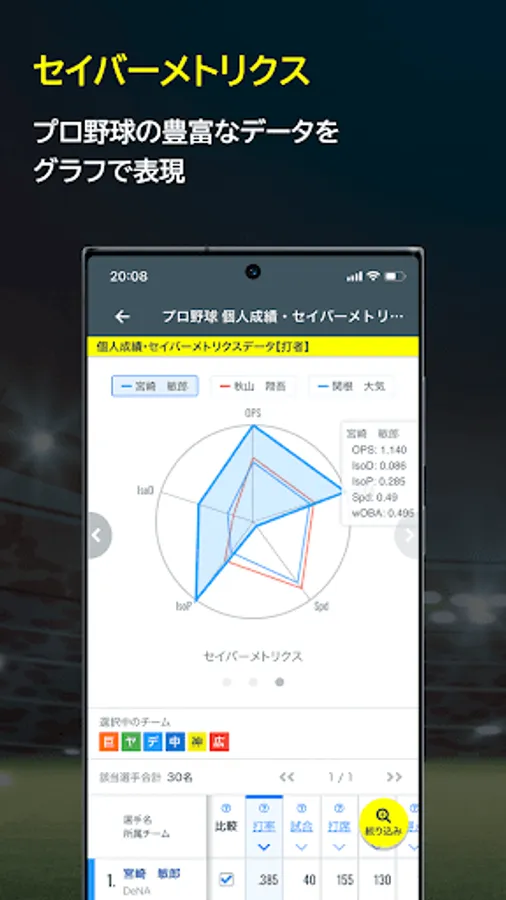 In addition to professional baseball, J-League and B-League game schedules / results, rankings, stats, etc. are distributed.