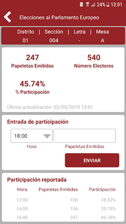 App integrated with SPAI Elector, which allows the representatives of the town hall at the polling stations to communicate the results of participation and scrutiny.