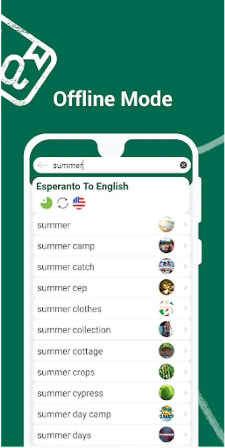 • Both offline and online translation – You can use English to Esperanto Dictionary app even when you are not connected to the internet.
