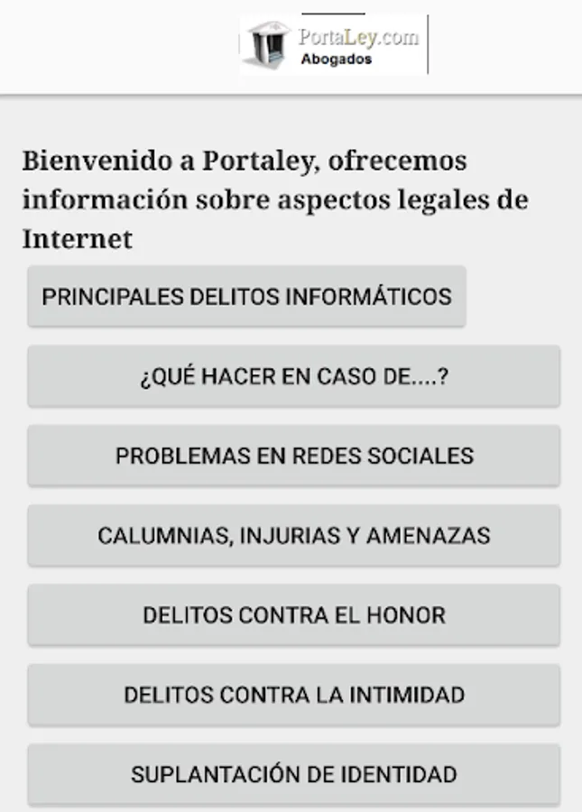 On the Internet we can find legal problems, so this application developed by Lawyers Portaley, to report certain situations that we can find on the Internet, can affect how we act and how to run the least possible risk arises.