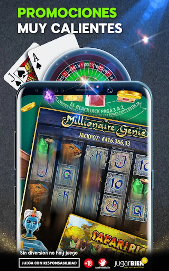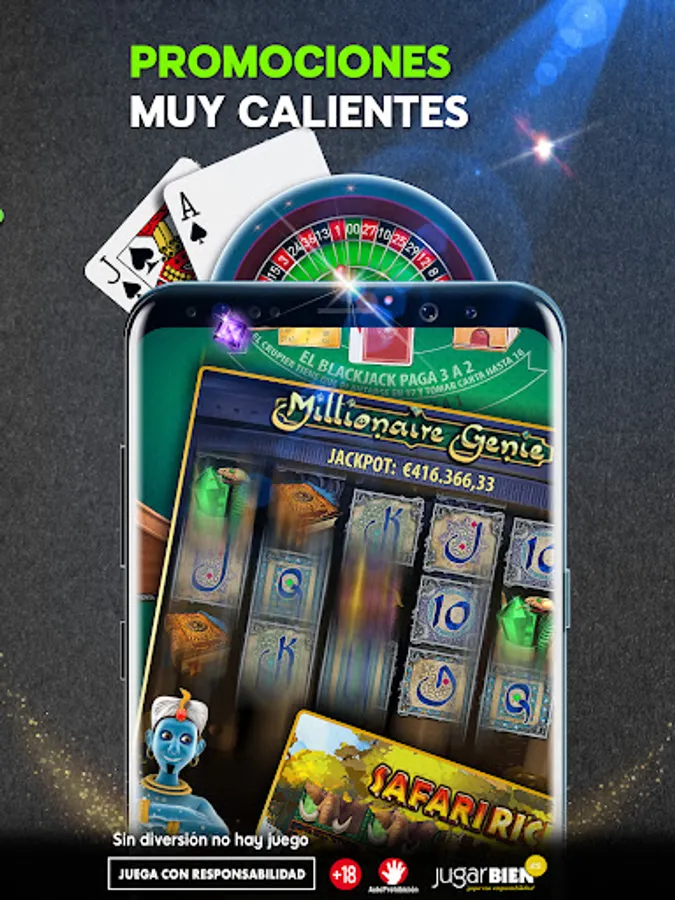 • Play our best slot machine games including Millionaire Genie, Starburst, Safari Riches and Jackpot or Live Blackjack and Roulette.