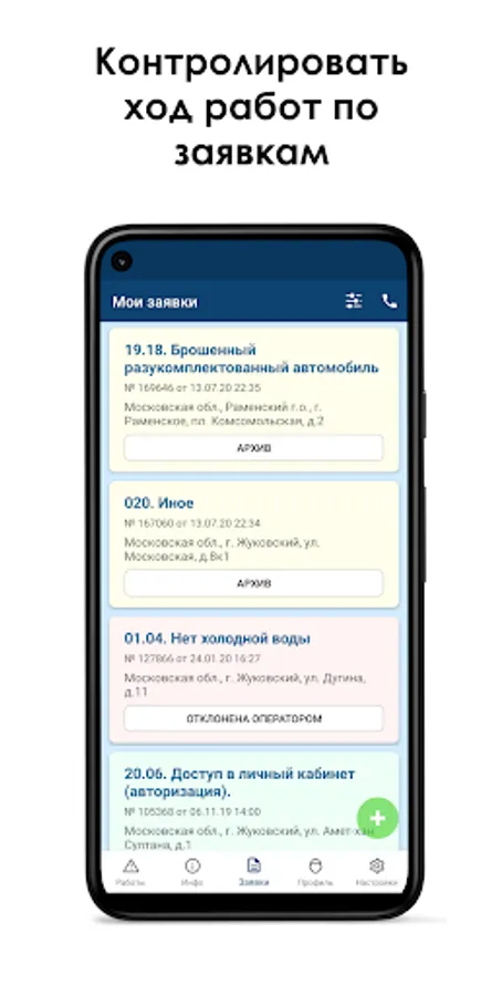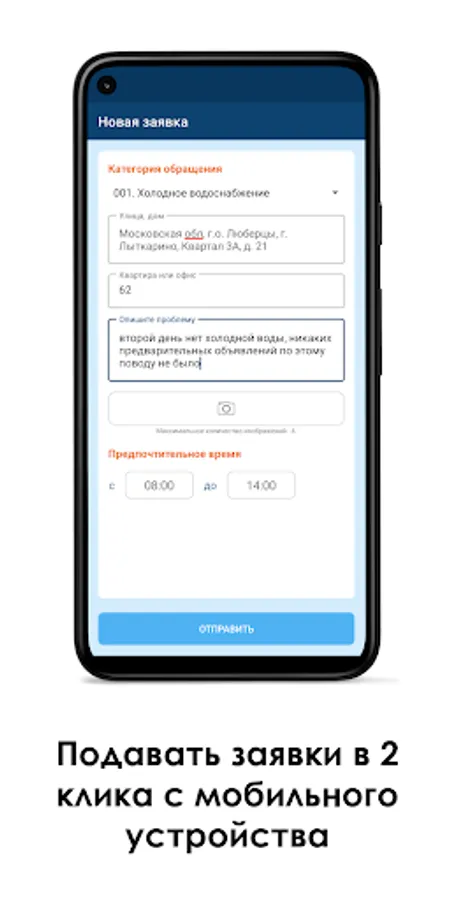 You can apply for any service for servicing an apartment, house and adjacent territory, get up-to-date information on utility outages at your address, track the history of completed applications, and evaluate the quality of work performed.
