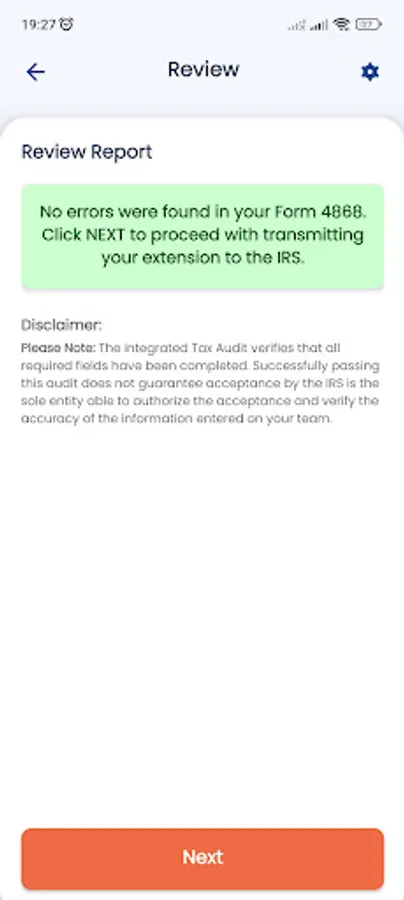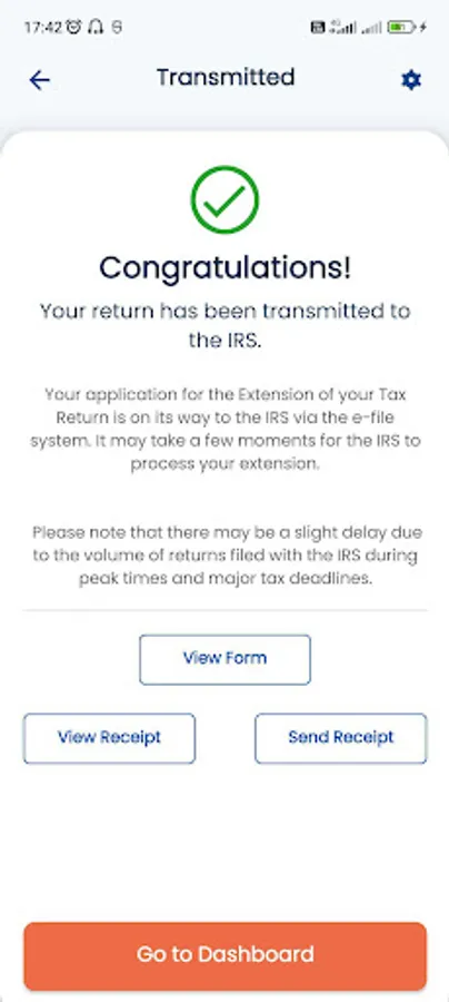Once your extension is transmitted, you will receive instant email notifications regarding the IRS status of your form.