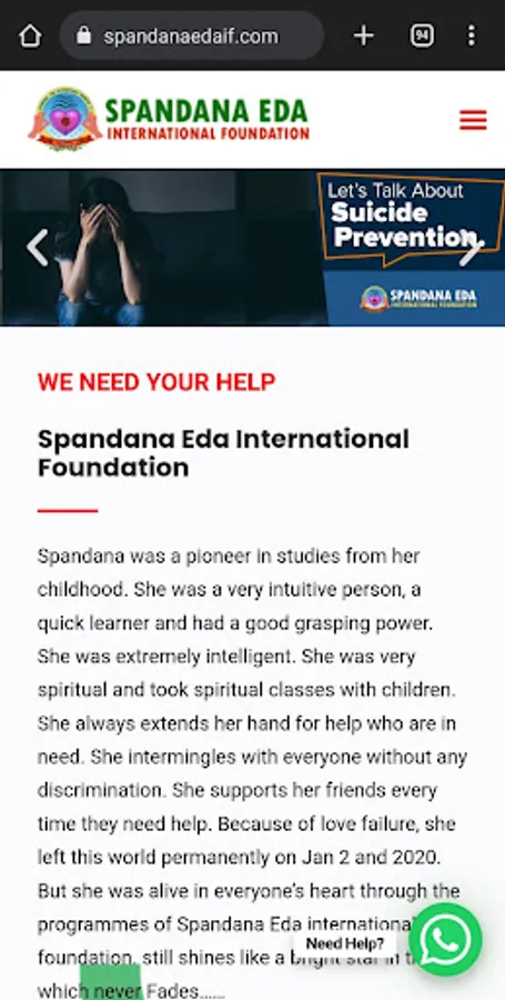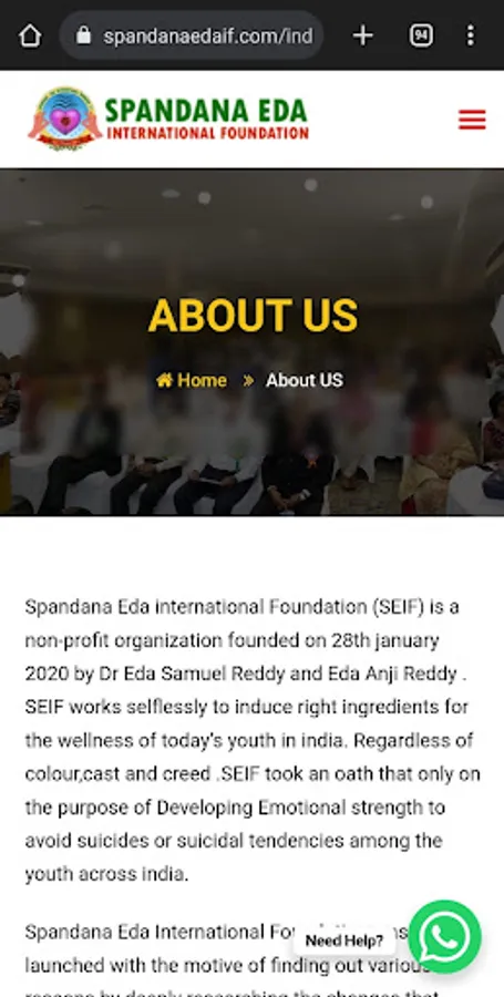 Spandana Eda International Foundation was launched with the motive of finding out various reasons by deeply researching the changes that occur from generation to generation .one among such is the most immatured approach in the youth causing the tender emotional states to trigger the thoughts of self-punishment.SEIF works on evaluating. promoting the procedures to subdue suicidal tendencies through proper counseling. the most pathetic unforgettable thing is the end of the life of a loved one. SEIF fonder Dr. Eda Samuel Reddy’s one and only daughter. Spandana Eda ended her life by committing suicide on 2nd January 2020 which brought severe mental agony to parents and among the family members.
