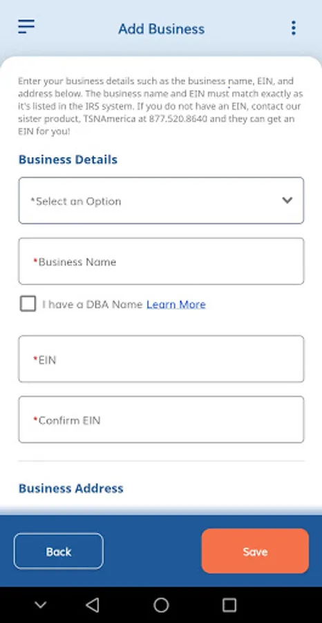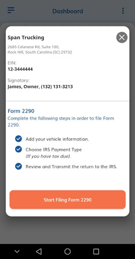 If you don't have an account with ExpressTruckTax, you will be prompted to create one and enter some basic business information including your EIN, Business Name, and Business Address.