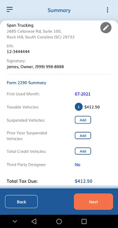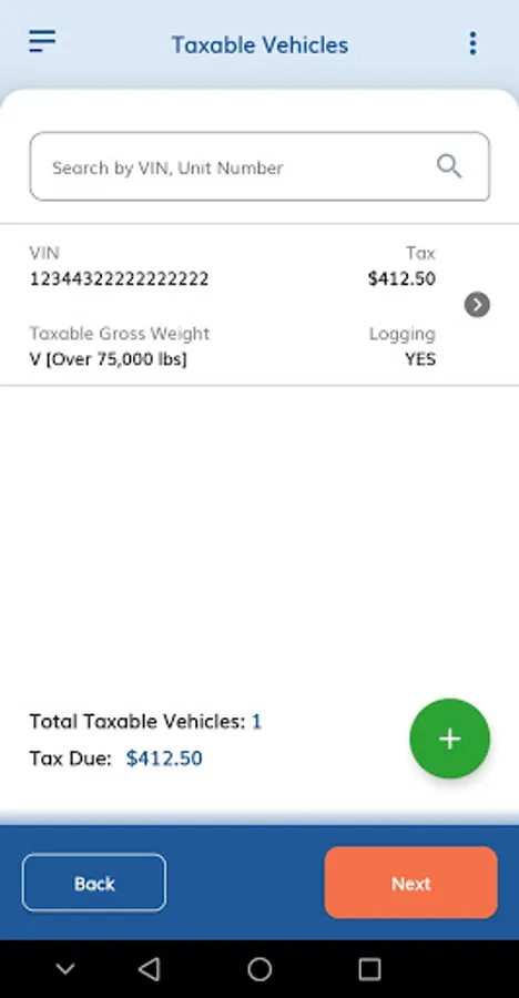Enter your vehicle details including your VIN, Taxable Gross Weight Category, and any Suspended Vehicles you may have. Your information will be saved automatically in the TruckZone to make your future filings easy.