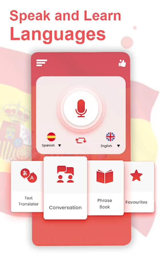 One of the key features of Spanish learning app is its translation capability. It allows you to easily translate words, phrases, and sentences from Spanish to your native language and vice versa. Whether you're reading a book, browsing the web, or having a conversation, the translation feature ensures you can quickly understand and communicate in both languages. With its voice translation capability for all languages, you just need to speak and translate your words.