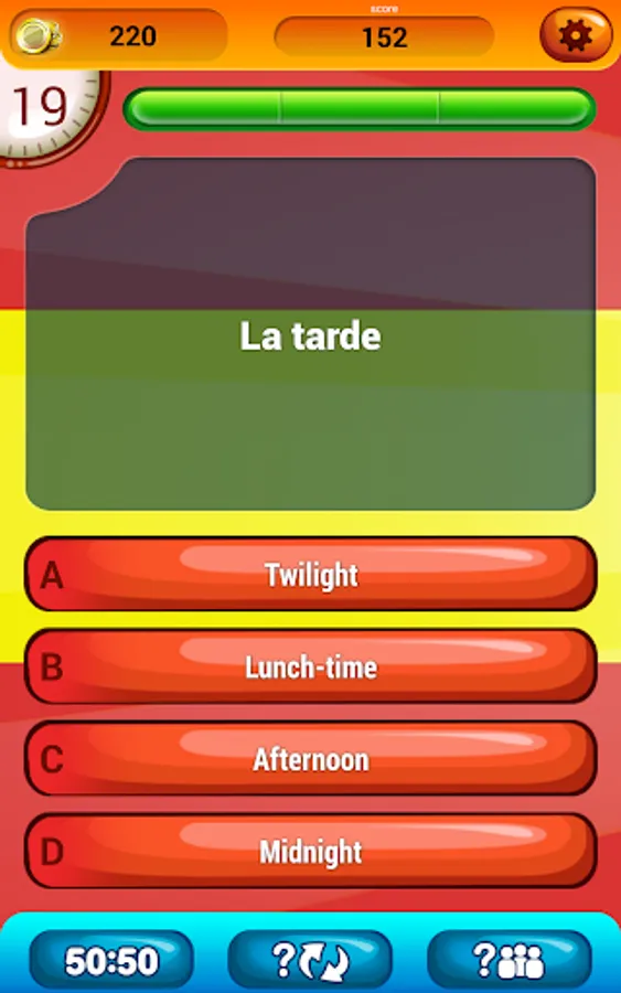 ➜ Play “Spanish vocabulary quiz”, choose one of 4 offered answers and do it fast, the clock is ticking;