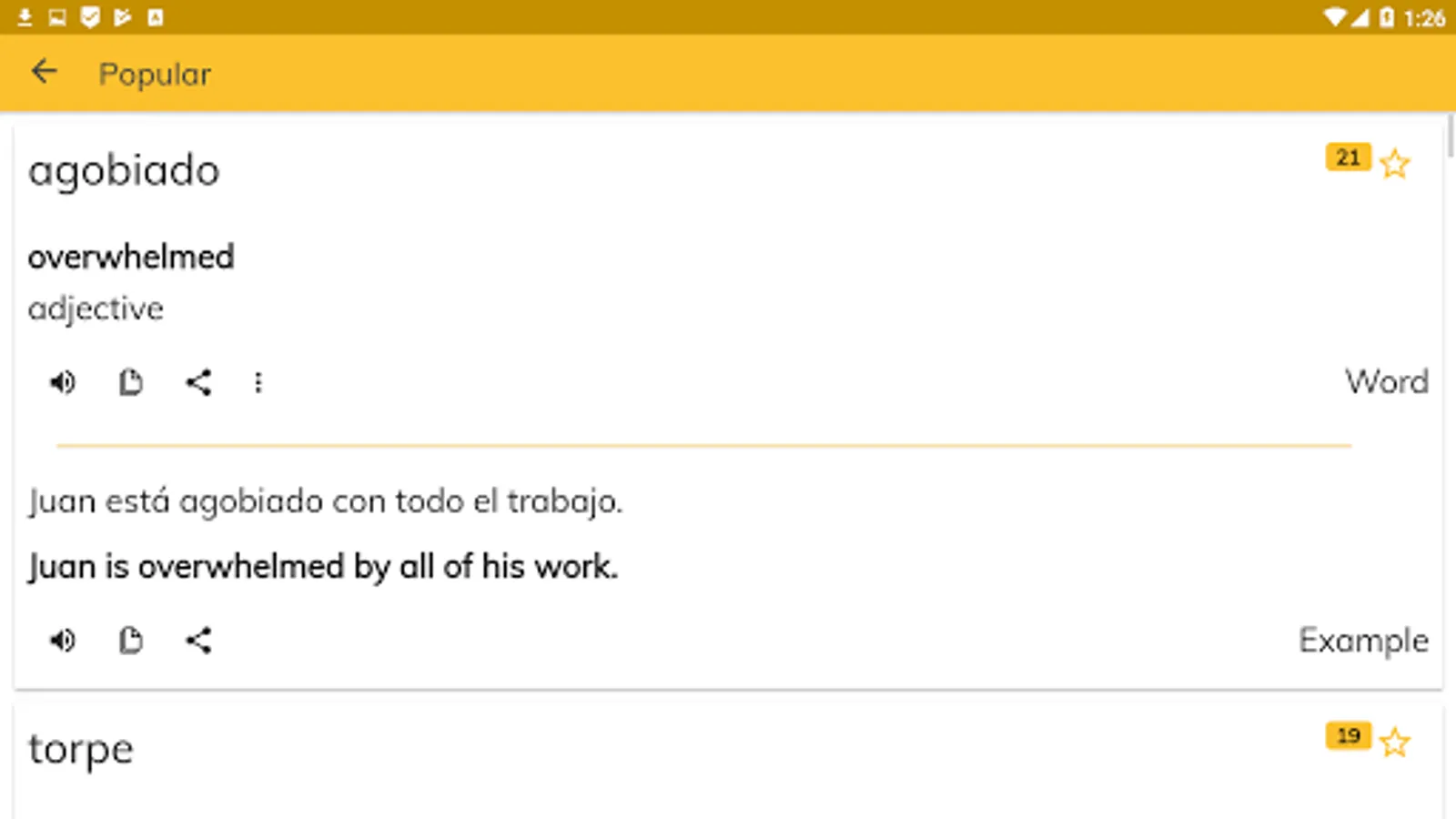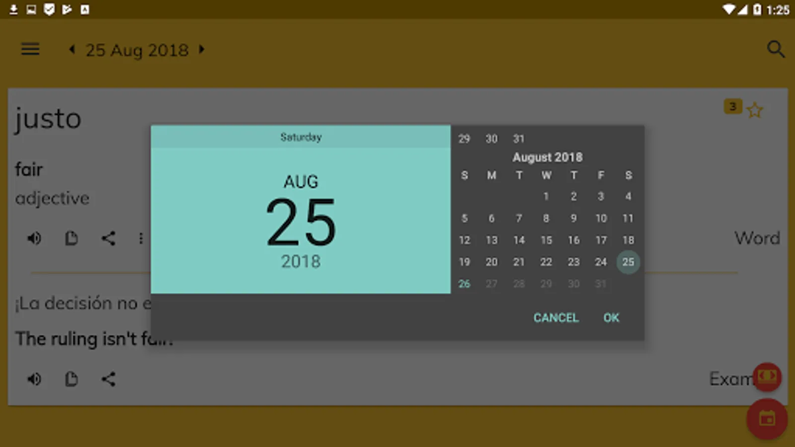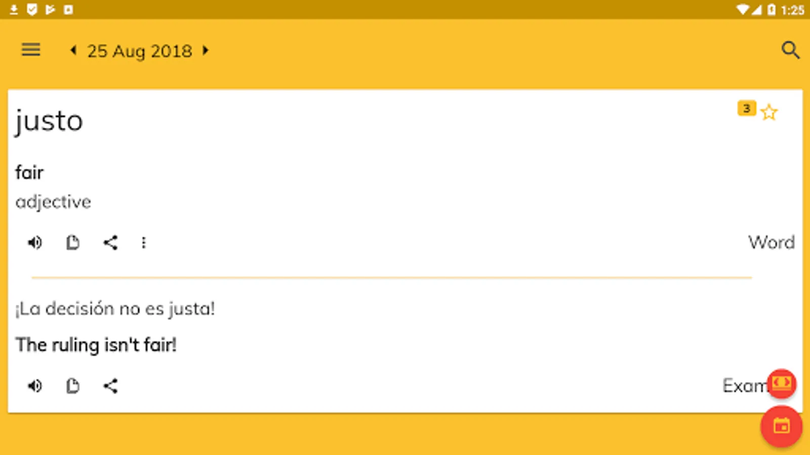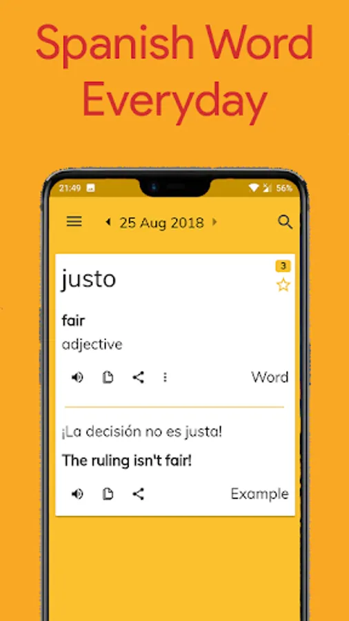 Learn a word a day from Spanish! This app will allows you to set a notification time to get a reminder for today's word. we have you covered as we update a new word daily at 5:30 AM (GMT).