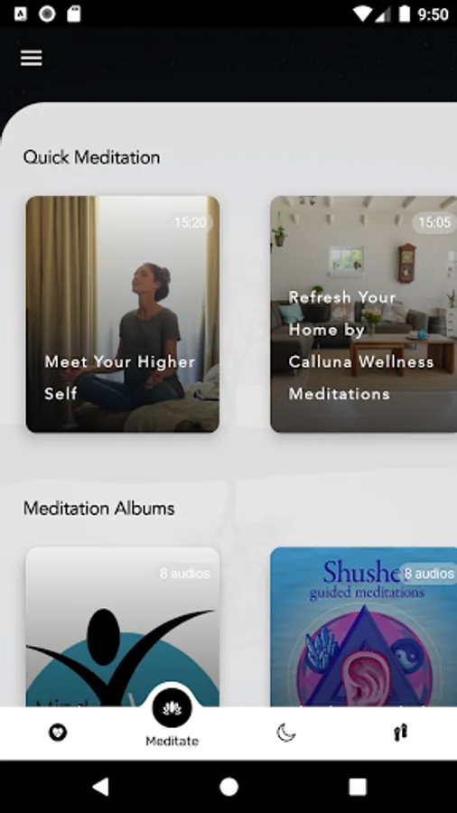 * Relax and calm contents, such as guided meditation audios from different authors.