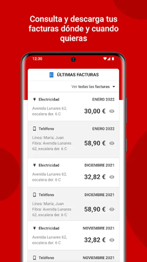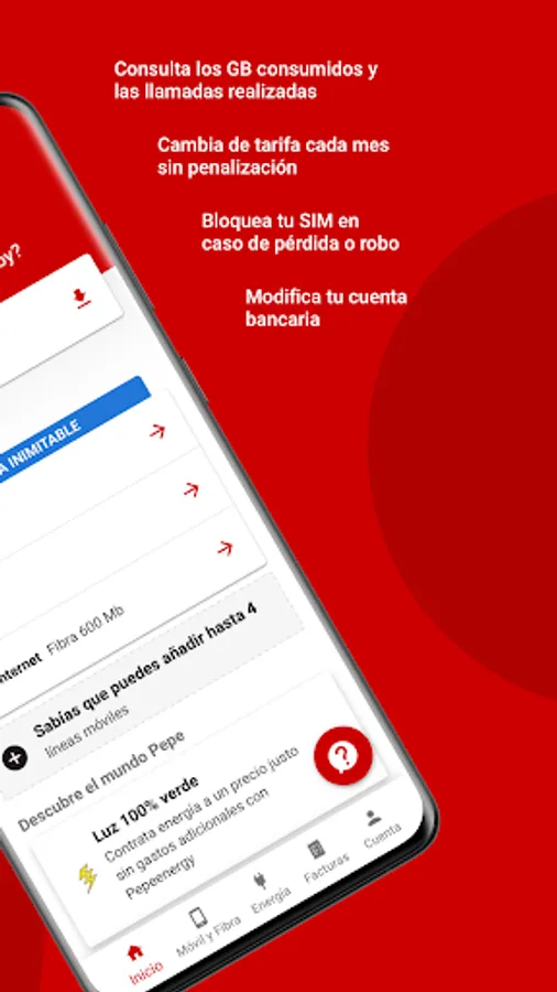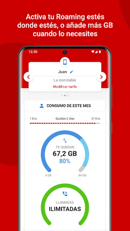 - Check the calls made, SMS sent or the Gigas consumed. You will be able to filter your consumption, differentiating it between national, within the EU or outside the EU and establish consumption advisories. Remember that you also have a Widget that will allow you to know your daily consumption without having to open the App.
