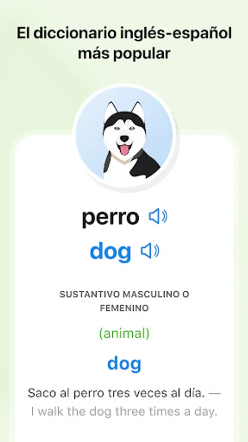 Join English learners around the world on inglés.com, featuring the highest quality Spanish-English dictionaries available offline, thousands of conjugations, and native speaker audio. Whether you’re looking for a fast and accurate translator or an offline dictionary, inglés.com has your back.