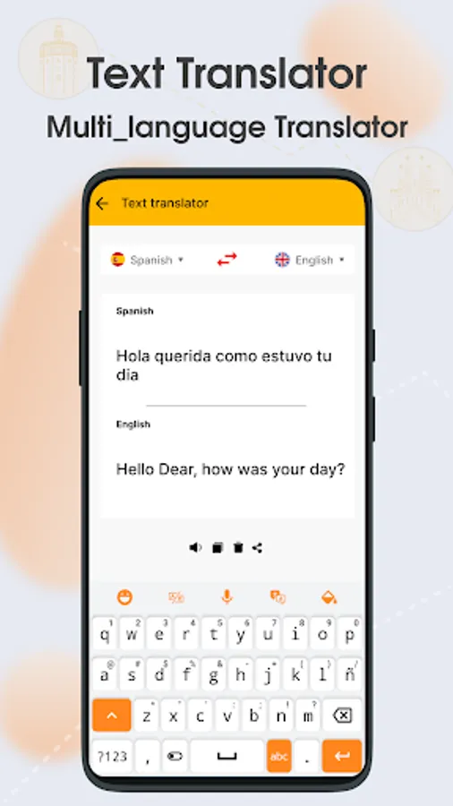 Spanish typing keyboard allows users to type and translate the Spanish language with the help of a Spanish text translator. English to Spanish translator keyboard helps to type Spanish language and convert with the Spanish text translator feature to your desired Language.