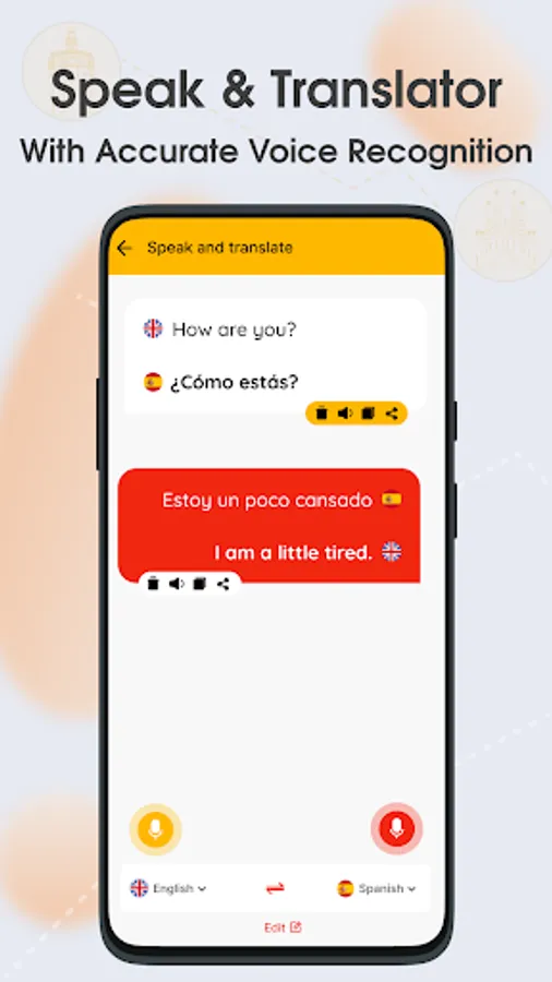 Spanish Voice Translator App allows users to Speak and translate with this Spanish Voice Typing Keyboard. Spanish Translator keyboard and Spanish voice translator to English will recognize the voice input of the user. Make a translation into the desired language and convert Spanish text with the help of a Spanish voice typing app.