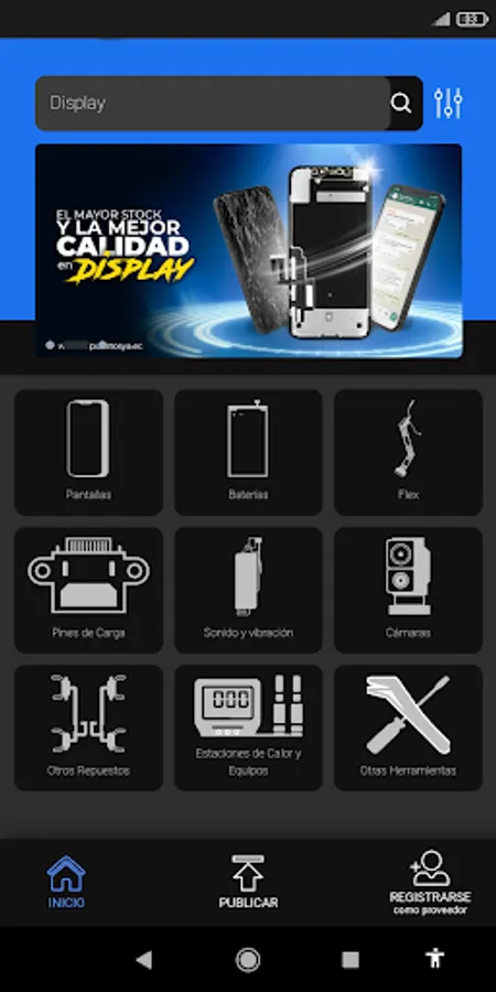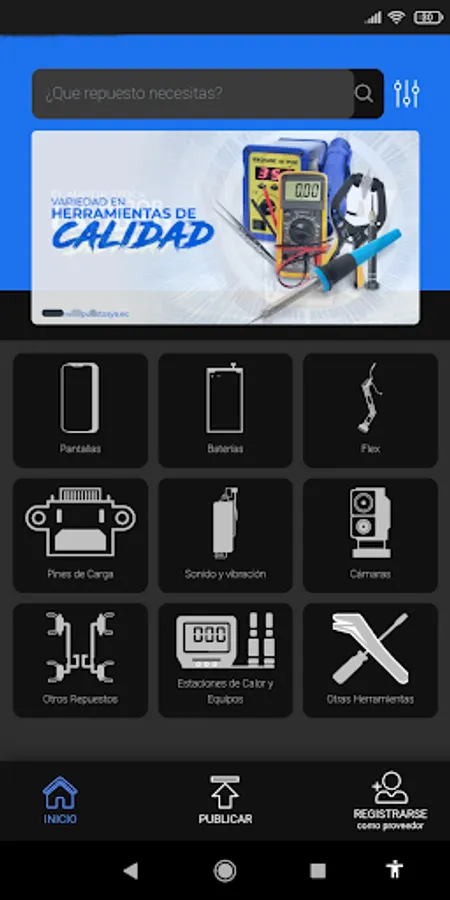 Application to speed up the search for spare parts for cell phones by and work tools for repair technicians. The best suppliers will be able to publish their products after verification.