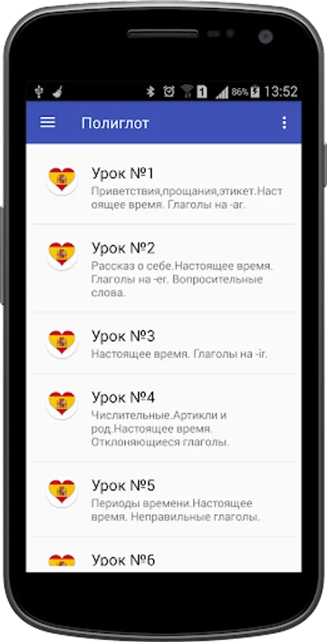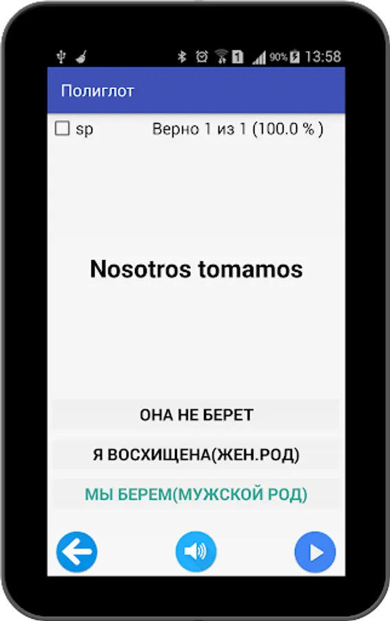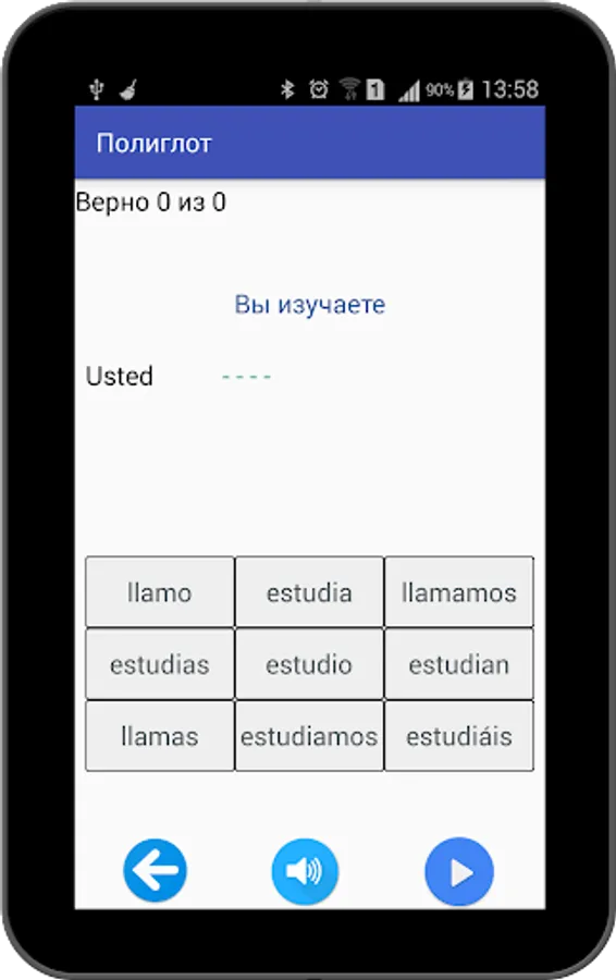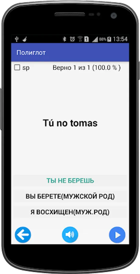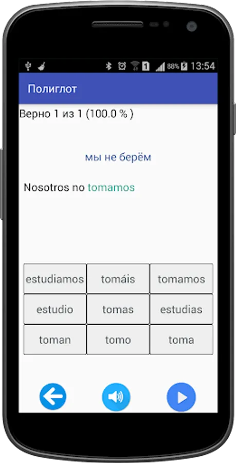 The program is designed to train conjugation of Spanish verbs on persons in the present, past and future tenses. It is enough to conjugate Spanish verbs 20 minutes a day using the Polyglot 16 Lessons program to master them automatically. "Polyglot 16 lessons - Spanish." It will be very useful to everyone who watched the popular reality show "Polyglot.
