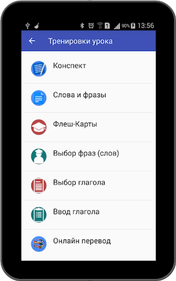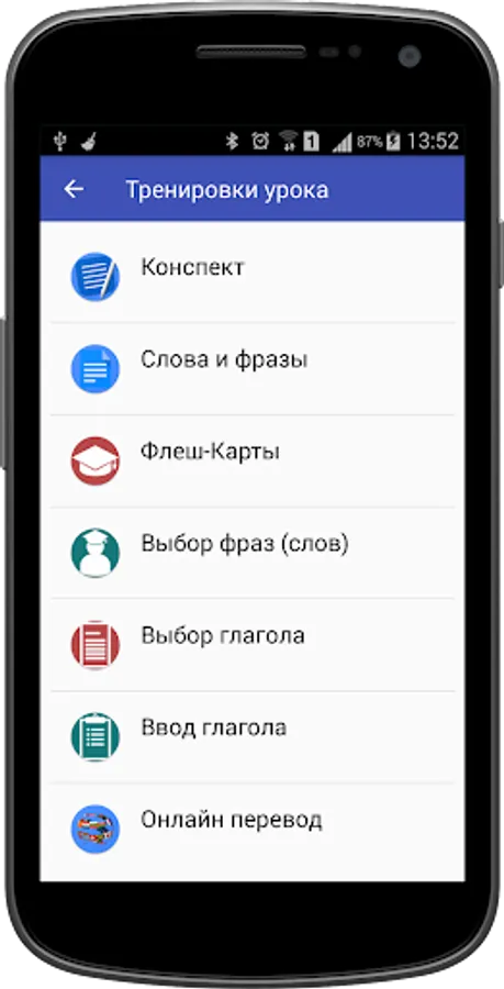 The program offers you simple expressions in Russian in the present and past tense, in one of three forms (affirmative, negative, interrogative).