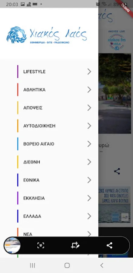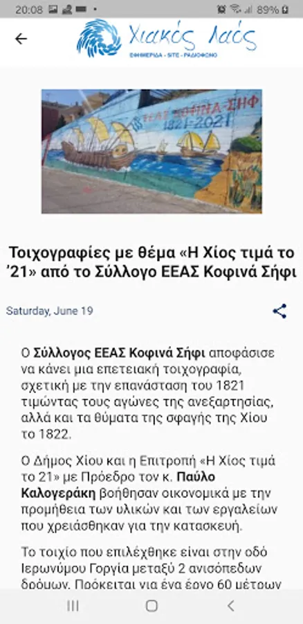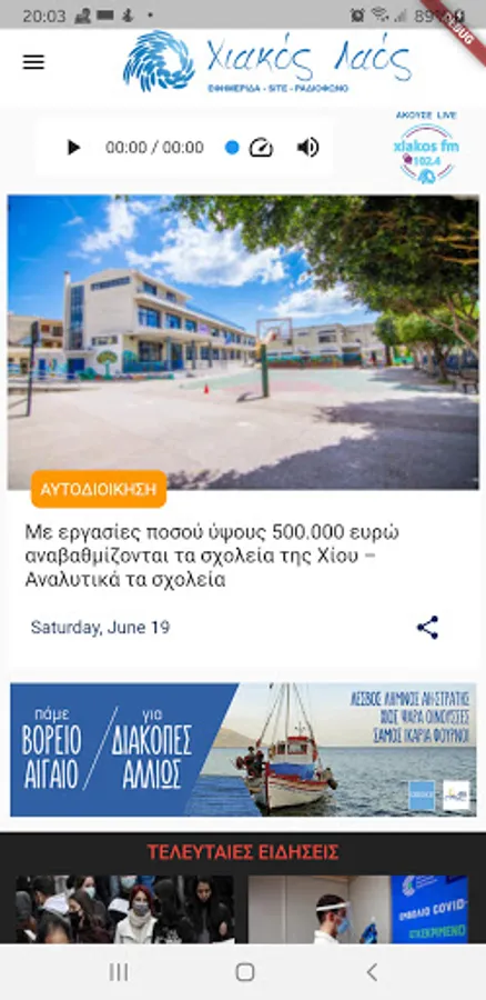 Η εφαρμογή του Χιακού Λαού. Όλες οι ειδήσεις για τη Χίο και οι σημαντικότερες για την Ελλάδα και όλο τον κόσμο. Οι ειδήσεις είναι χωρισμένες σε κατηγορίες και ο χρήστης μπορεί να επιλέξει την κατηγορία ή να δει αναλυτικά την είδηση που τον ενδιαφέρει, να τη διαβάσει και να την κοινοποιήσει στα κοινωνικά δίκτυα.