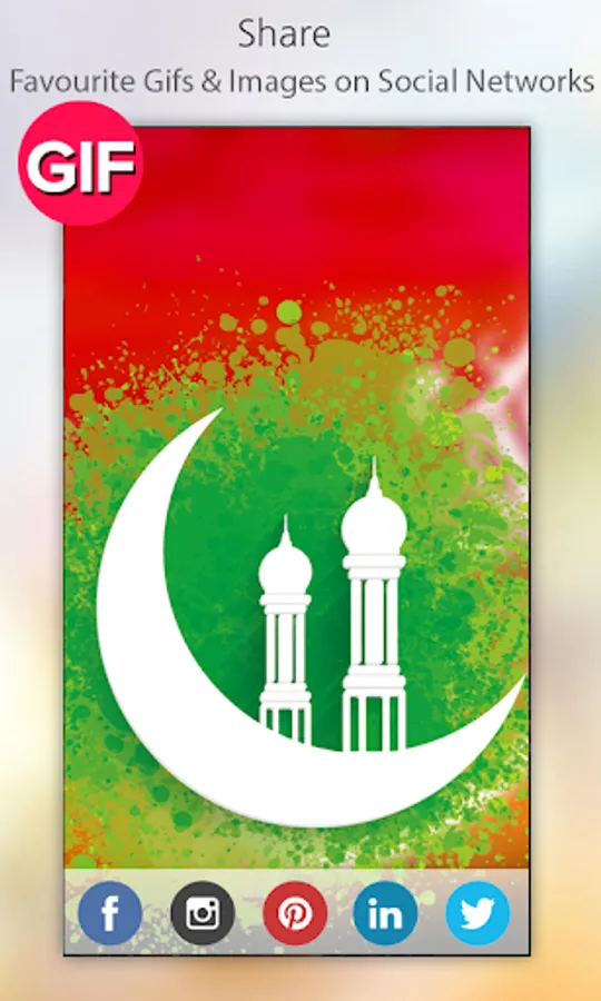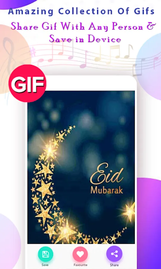 Eid Mubarak GIF have very good features are available in this application and also have directly Social sharing facility in this application.