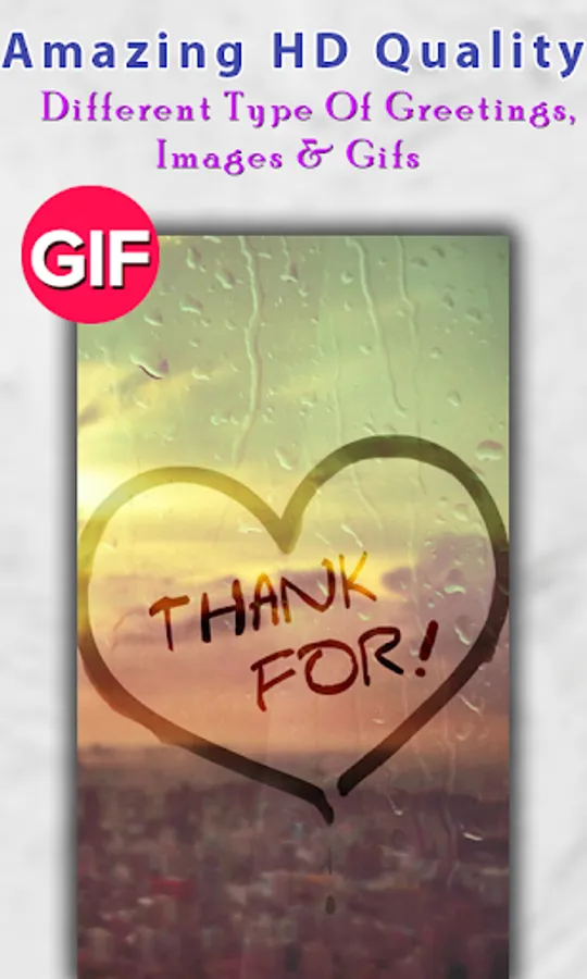 This Application consider Thank You GIF Based on Day, Love, Sun, Have a nice Day, Tea, Birds, Water, Star, Heart, Coffee, etc.