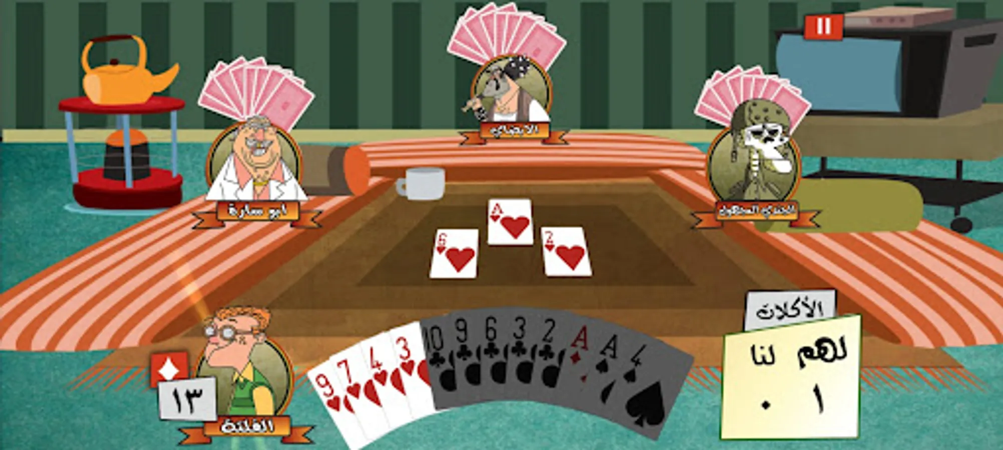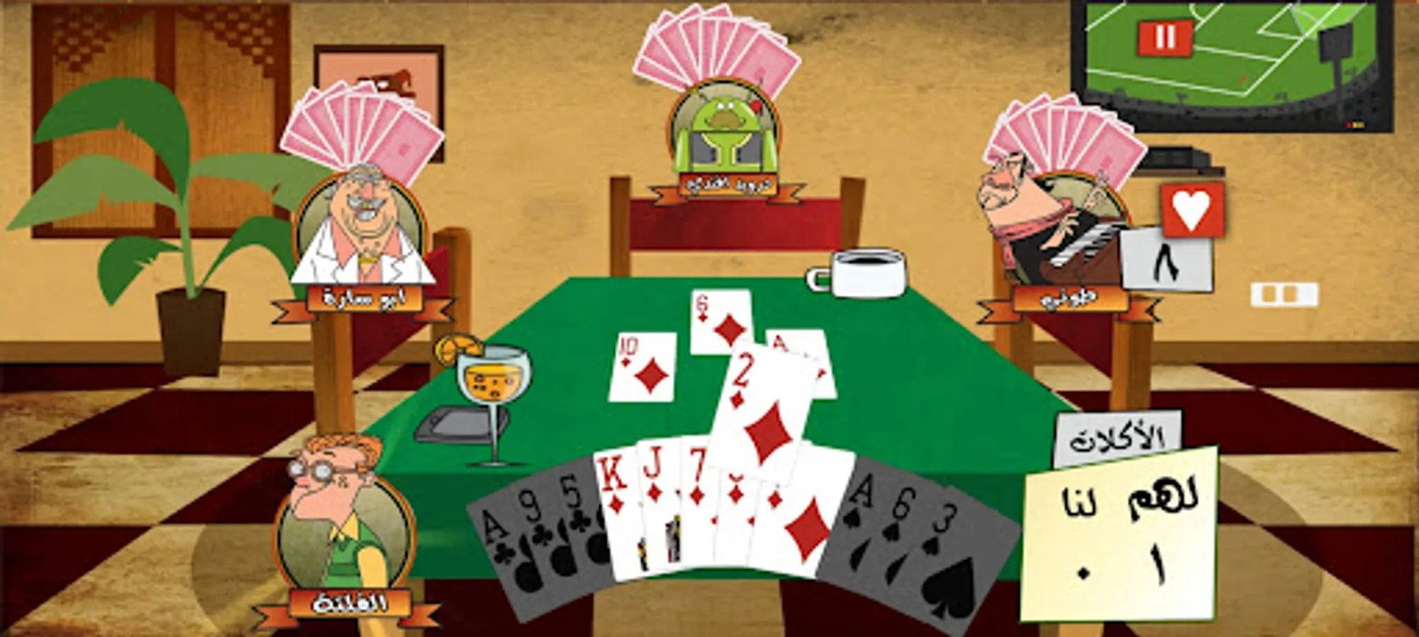 Tarneeb, also called hakam in Arabian Gulf region, is a popular plain trick-taking card game played in various middle eastern countries, most notably in the countries of the Levant, The aim of tarneeb is to win a set of continuous hands. There are four players in partnerships of two teams. The teams stay together for all the games of a set.