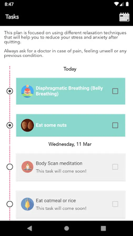 This version allows you to reduce stress and anxiety caused by nicotine, with more tips and advices, some audios to reduce stress, connect with other community users in your language, meet people in your same situation, share your achievements with your friends, the community, and other curiosities you never knew about snuff and nicotine.