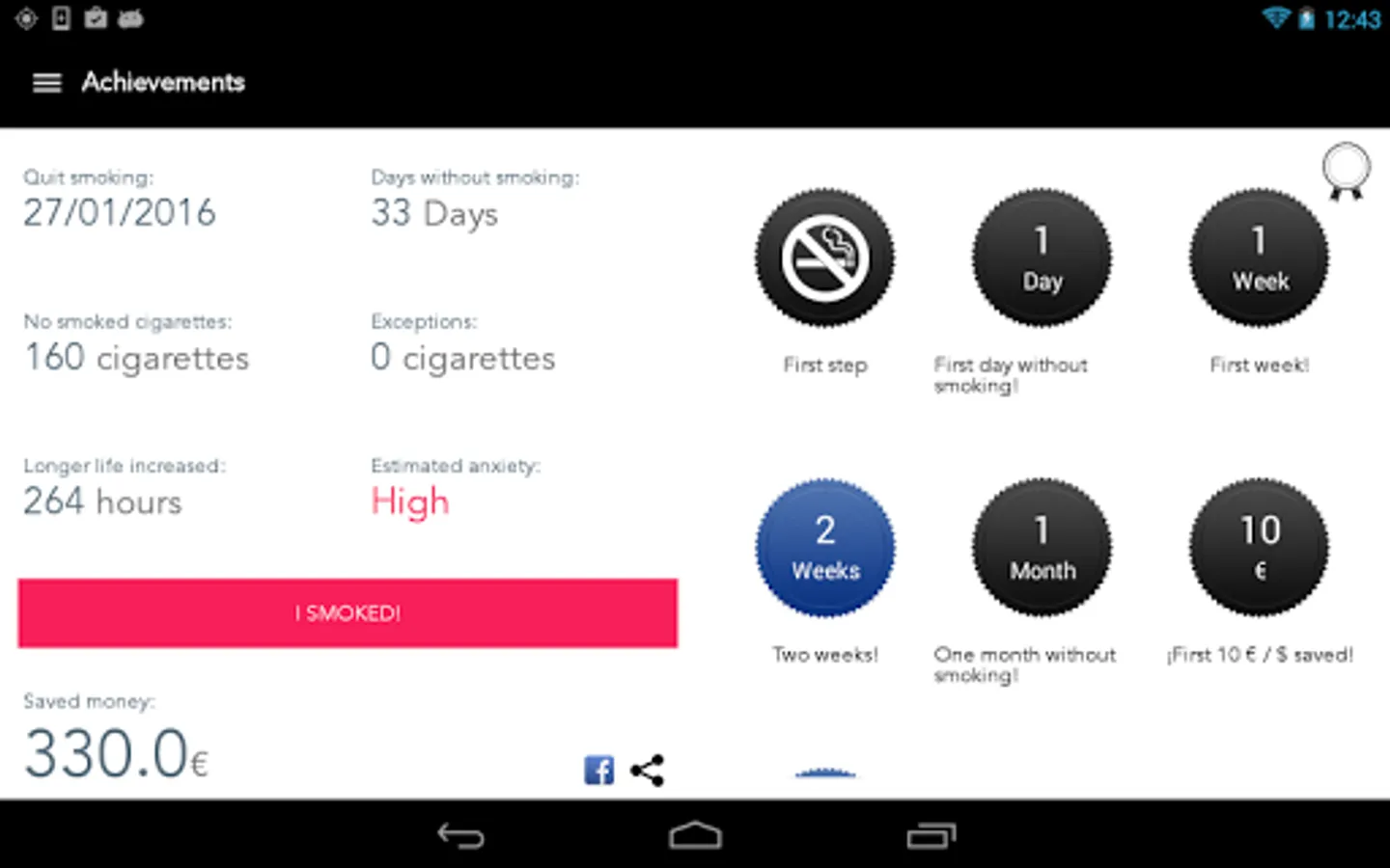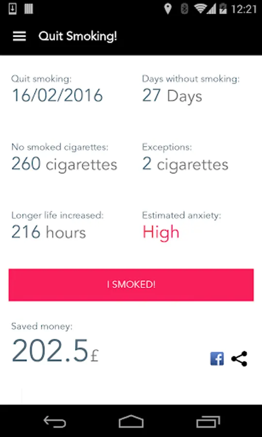 Trying to find the best way to quit smoking based on cold turkey? Quitify is your mate in the most difficult decisions of your life: to quit smoking forever. It gives you advices based on the expert opinion of the AECC and WHO on how to quit cigaretes but also helps you to quit smoking weed. The App allows you to see your progress over time, consumption statistics and view your achievements you have accomplished each day.