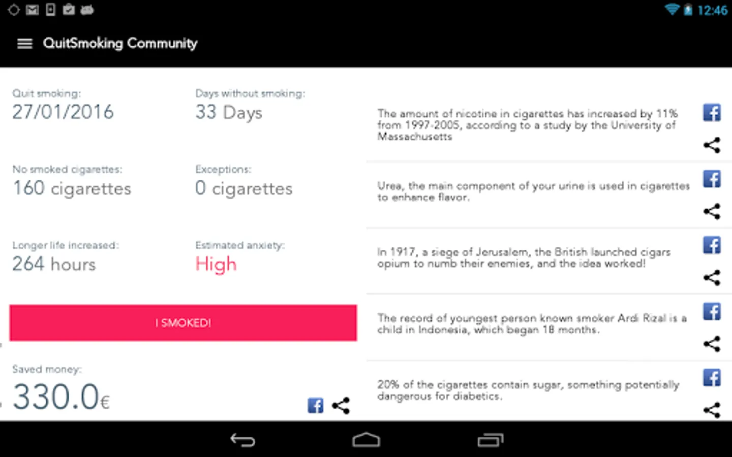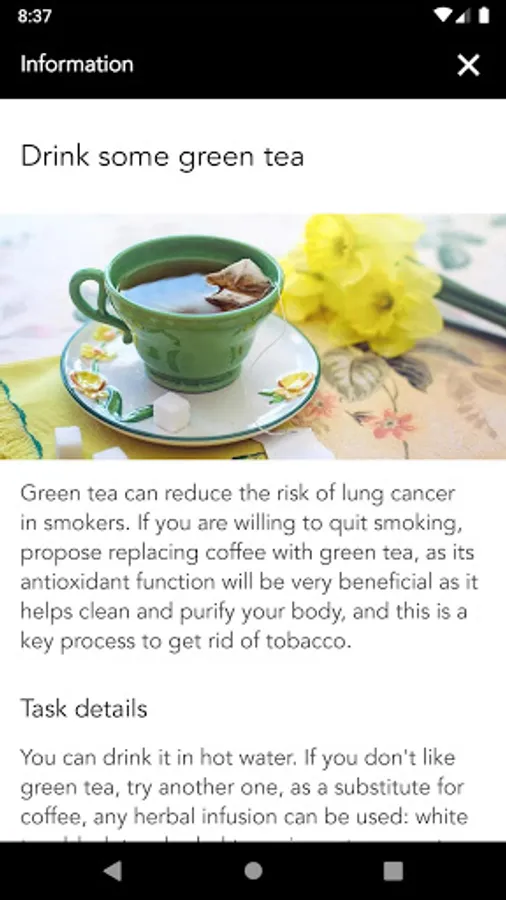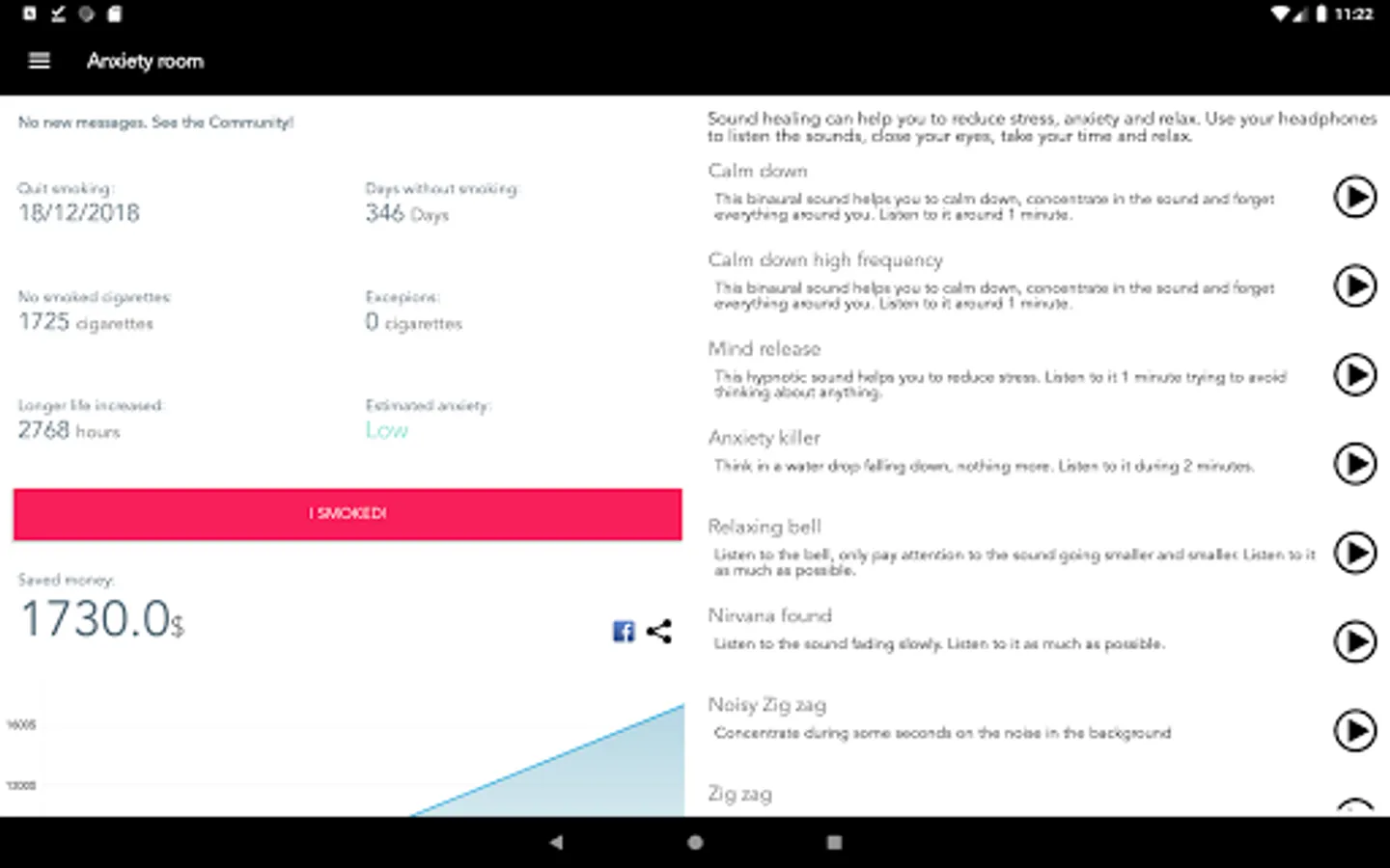This version allows you to reduce stress and anxiety caused by nicotine, with more tips and advices, some audios to reduce stress, connect with other community users in your language, meet people in your same situation, share your achievements with your friends, the community, and other curiosities you never knew about snuff and nicotine.