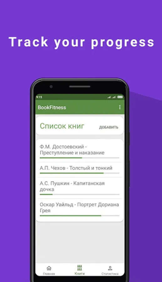 Do you like reading? Join us! Count and save the number of pages read per day in the application and watch the progress. BookFitness is a handy page counter that helps you monitor your reading progress.