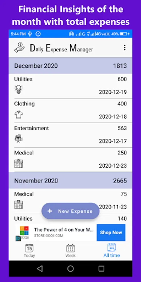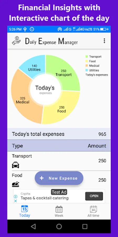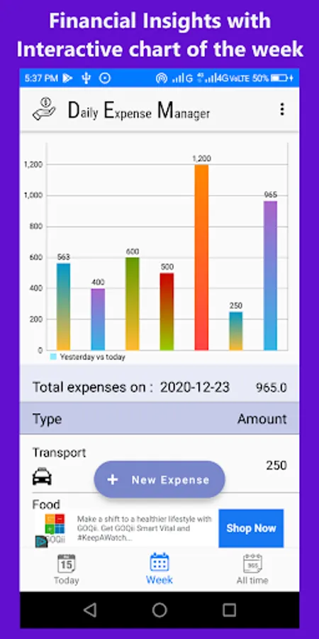 Keep track of your daily expenses, our simple design helps you save time in adding expenses. Interactive chart for day to day expenses gives you a lot of insight about the expenses, so with Daily Expense Manager you can stay on top and keep track of your expenses always.