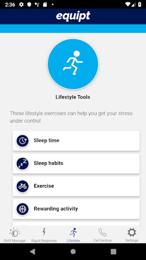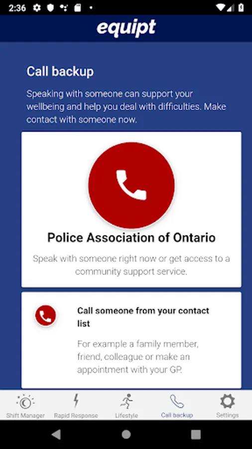 equipt is a free wellbeing and sleep app developed with leading health professionals. The app is designed for current and former police officers, employees and their families.