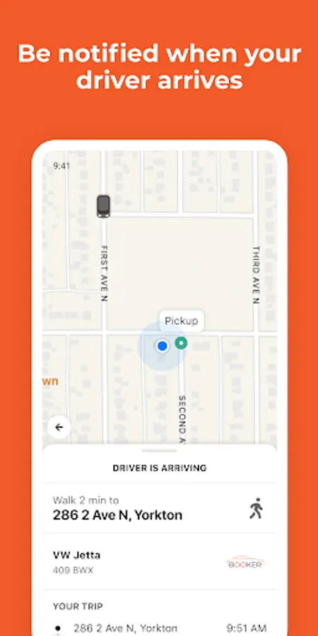 Our app allows you to book a ride with the tap of a button or schedule a ride at your convenience. Easily view how far away your driver is and how soon they will be arriving. Don’t worry! There is no need to watch for your driver or worry when they will arrive. Be notified through the app when your driver is close and when they get to you. Available 24/7 use Booker Rides to get where you want to go when you want to get there.