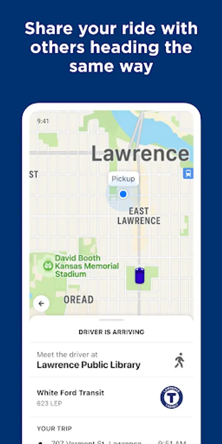 Schedule an on-demand transit ride with the tap of a button. Get picked up and dropped off in Lawrence wherever you want, and share your ride with others headed the same way. Available overnight and Sunday and free to use!