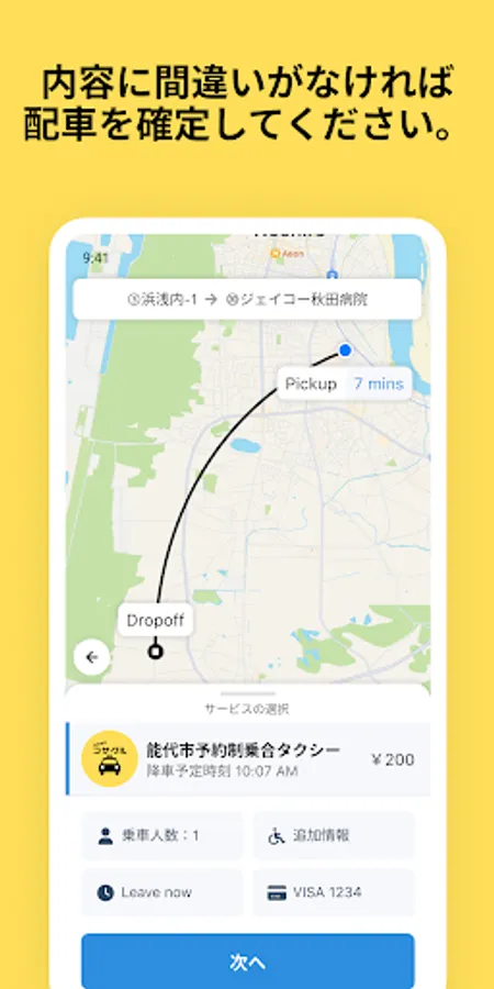 In Noshiro City, we are conducting a demonstration operation of the AI on-demand shared transportation service for two months in November and December 2023. In addition to making a phone reservation, you can easily make a reservation by simply entering several information on this application, and we will transport you from the nearest boarding place to your destination.