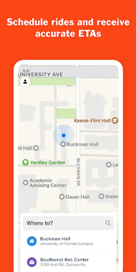 The UF SNAP by Spare app allows UF students to request on-demand transportation from the SNAP nighttime safe ride service. Submit your ride requests, get accurate ETA estimates, track your van's progress, receive important updates about SNAP service, and more by downloading UF SNAP by Spare.
