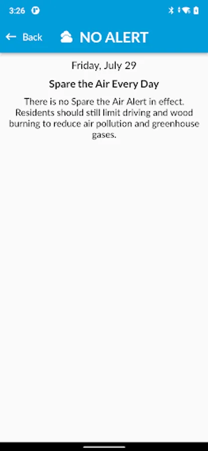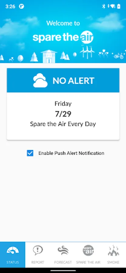•Air Alerts – Provides Alert notifications when the Bay Area is experiencing a Spare the Air Day.