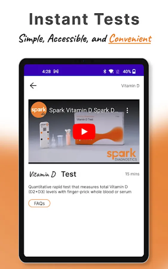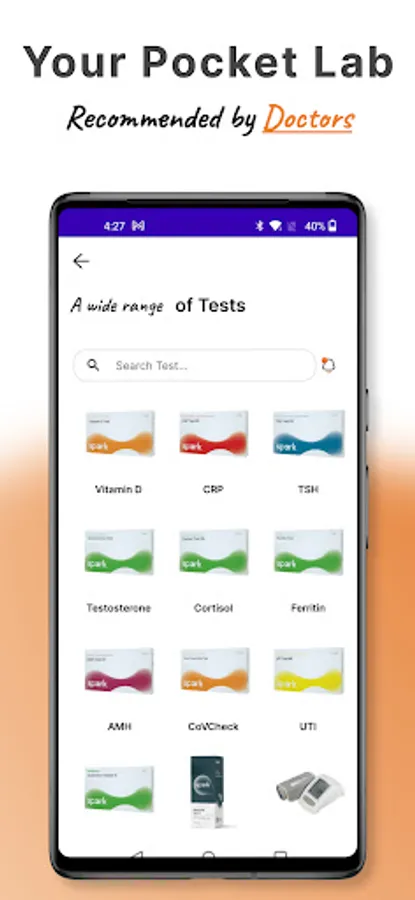 The app allows instant measurement of the multitude of health screening tests via the Smartphone Camera or Bluetooth functionality of the companion device. This smartphone app is combined with the SPARK rapid test kits, SPARK BP Test, or SPARK Urinalysis test kits to get instant results in just 15 minutes.