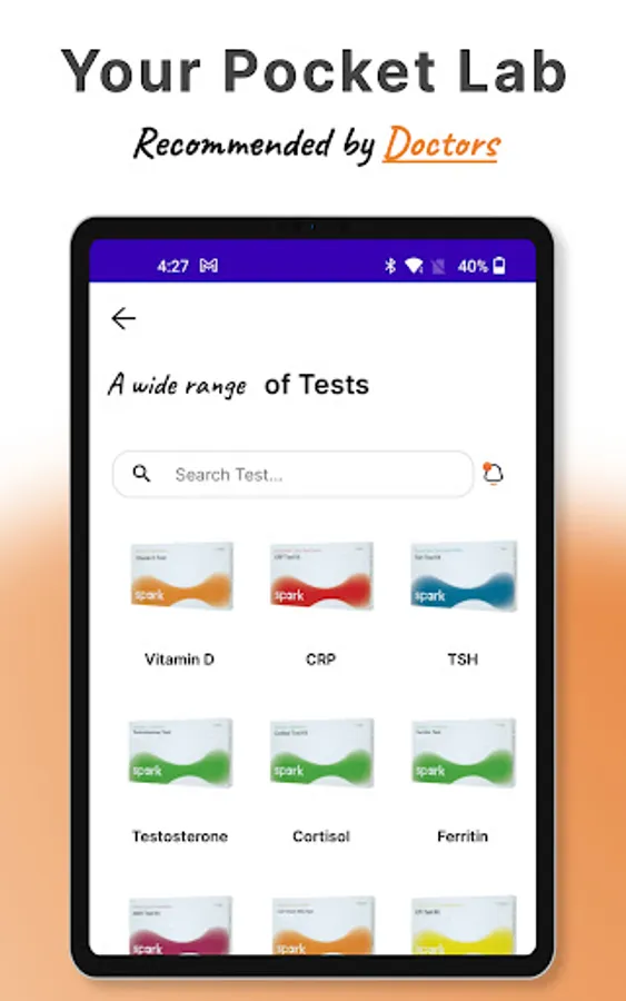 SparkDx is a companion app to be used along with Spark Diagnostics test products that enable instant health screening and testing of essential health parameters. The app works together with the test kits sold by Spark Diagnostics to instantly give results of the Spark Diagnostics Test kits sold separately.