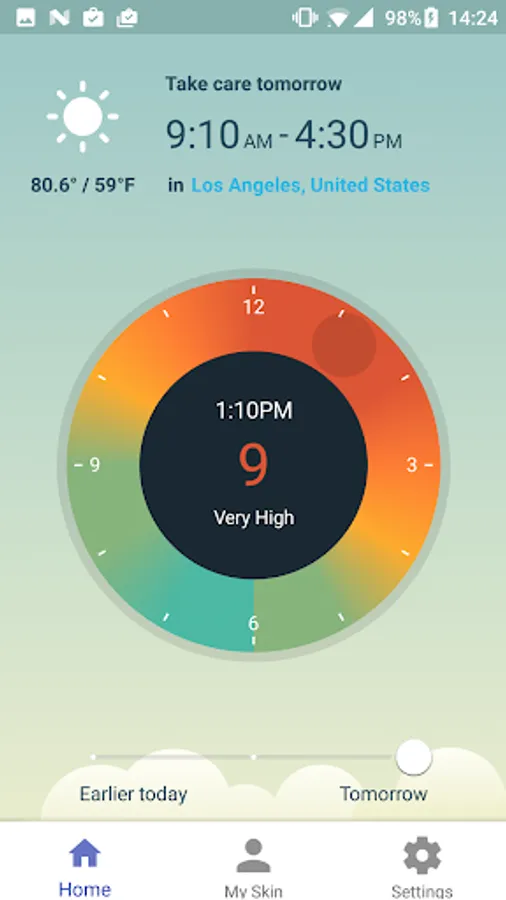 See the UV index forecast for the day, see when it’s safe to be outside and when to avoid the sun.