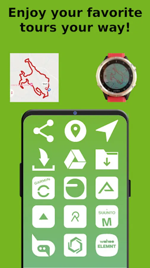 - Share the GPX file using Gmail, Whatsapp, ... or open it using Garmin Connect, Wikiloc, ...