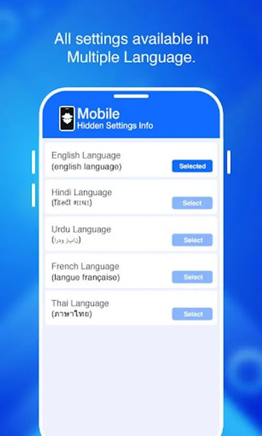 App Available in multiple language so user can also check their hidden setting in their friendly language..