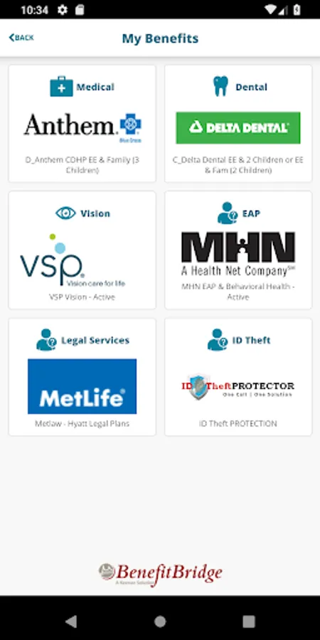 Get the BenefitBridge app and stay on top of your insurance benefits. This app gives you access to plan details for medical, dental, vision, life insurance – basically all the employee benefits you signed up for. The My Benefits section provides plan details like carrier and plan type.