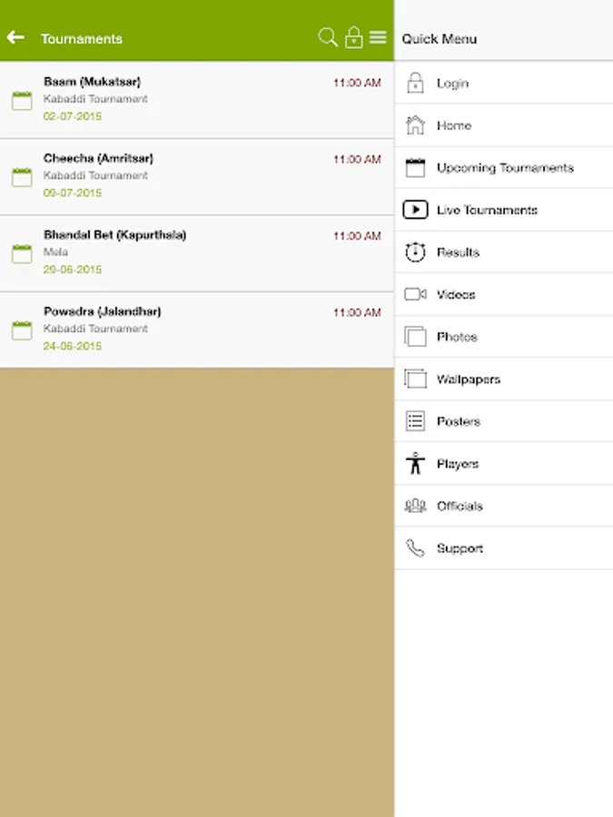- Photos of particular kabaddi tournaments