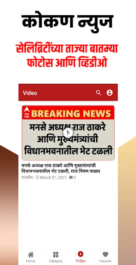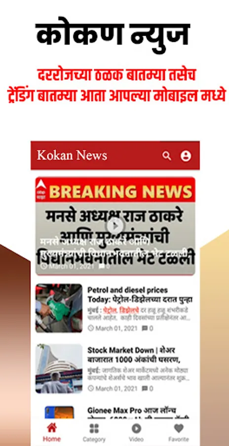 This local news app coverage and updates on Local news, Politics, Election, Sports, Health, Jobs alert, Live News Channel and much more. This app to Get Kokan Breaking News on your Smartphone in Marathi language from trusted news sources.