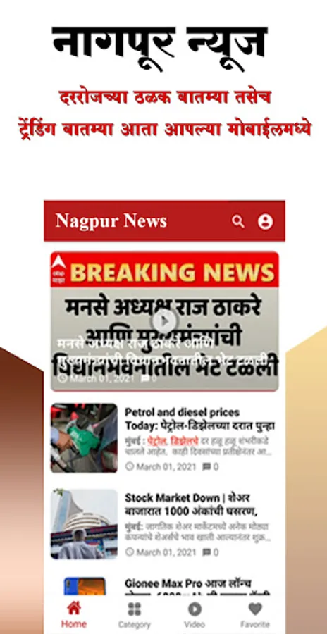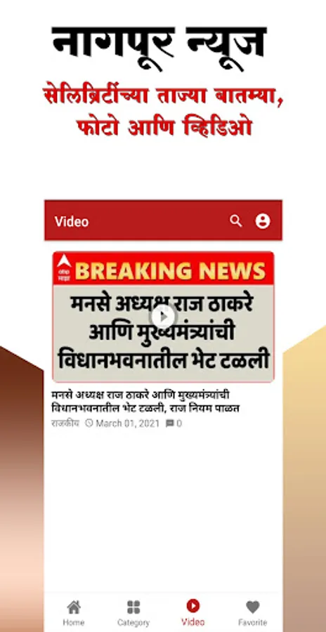 This local news app coverage and updates on Local news, Politics, Election, Sports, Health, Jobs alert, Live News Channel and much more. This app to Get Nagpur today Breaking News on your Smartphone in Marathi language from trusted news sources.