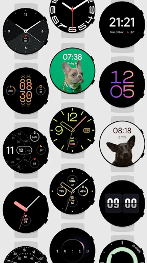 • Fliqlo Watch Faces or Flip Clock Watch Faces.